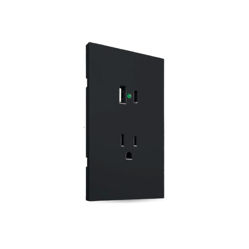 Placa Contacto Y Cargador USB, Tipo C, Color Negro Luxury, Policarbonato