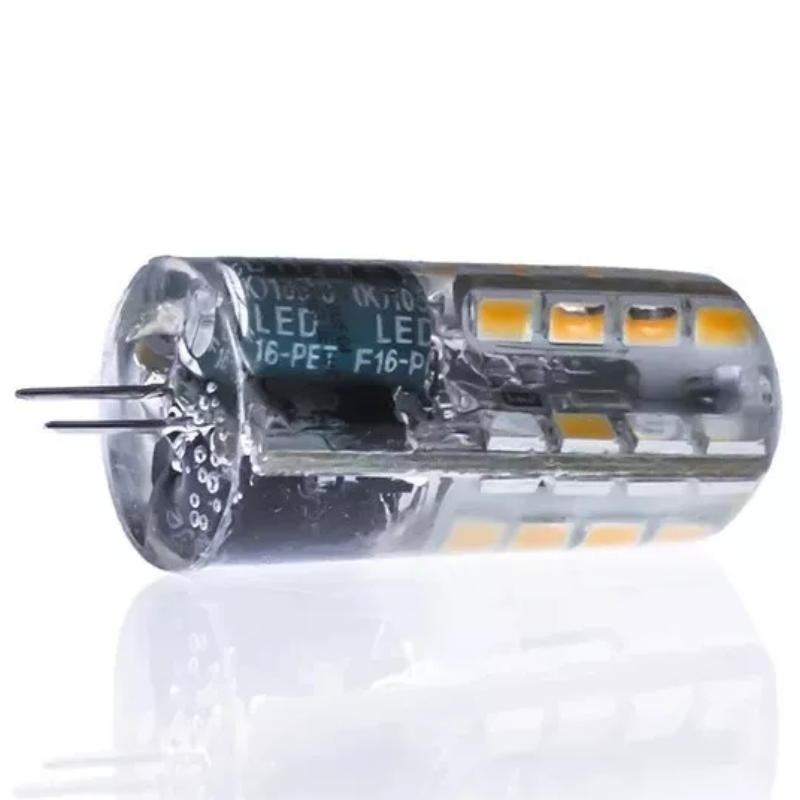 Lámpara Base Led G4, Blanco Frío 5w óptica 360° aluminio cubierta acrílica transparente, 110-127V ca, protección IP20.