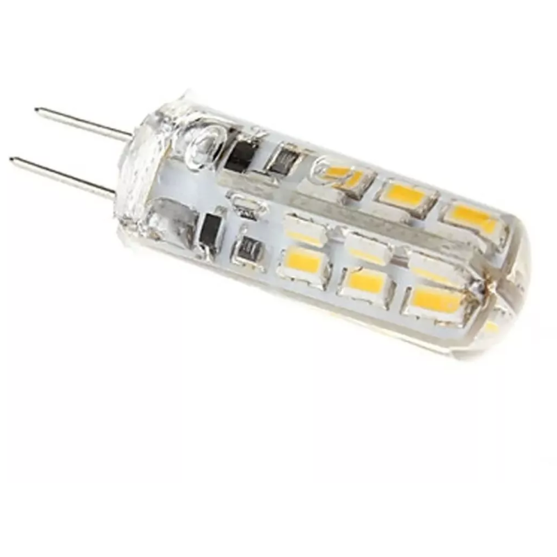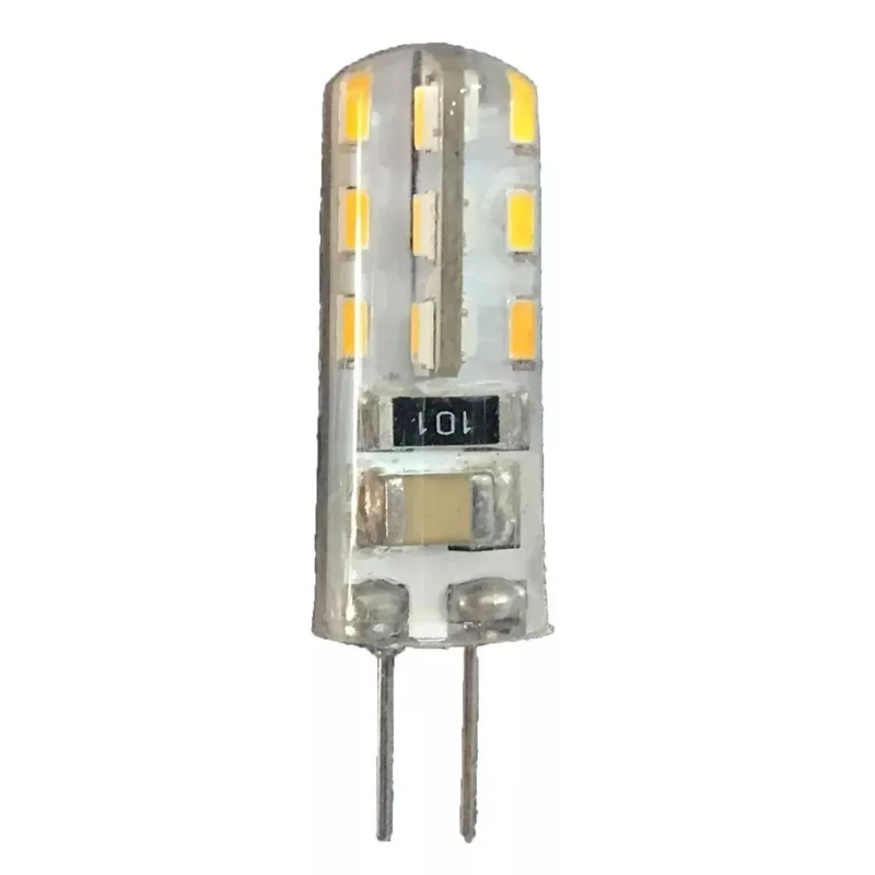 Lámpara Base Led G4, Blanco Calido 4w óptica 360° aluminio cubierta acrílica transparente, 110-127V ca, protección IP20.