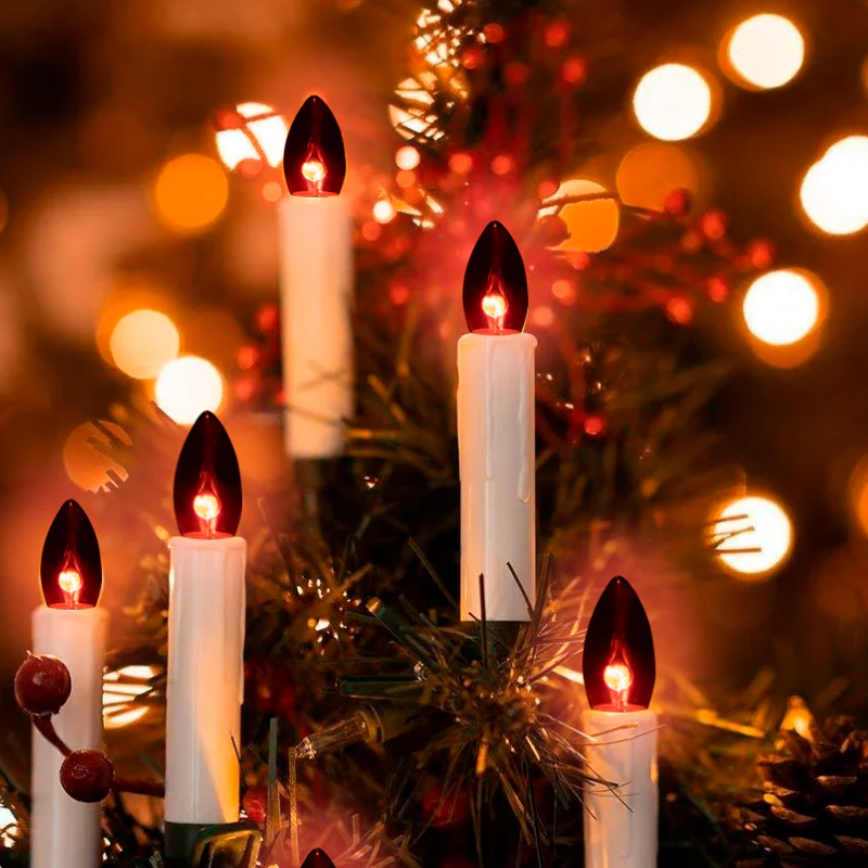 Las lámparas tipo vela Flicker Neón oscilante incandescentes están fabricadas con una cubierta o difusor en cristal y un filamento de tungsteno oscilante que da el efecto de una flama.