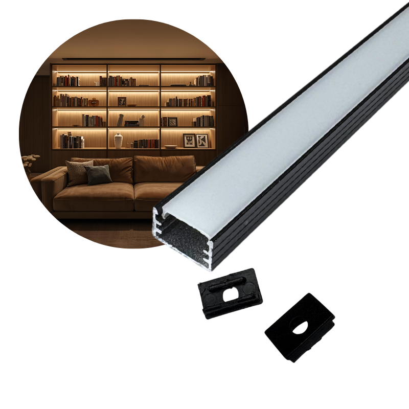 3m Perfil Aluminio Negro 1408B Empotrar/Sobreponer 14.4x8.8mm