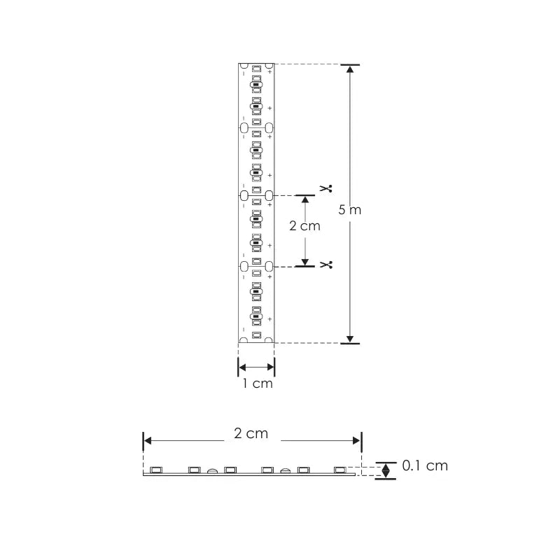 Ultra-thin strip for indoor and outdoor use, 240 LEDs per meter, type 2216, 5-meter roll with 3M self-adhesive tape for mounting, cuts every 2.5 cm