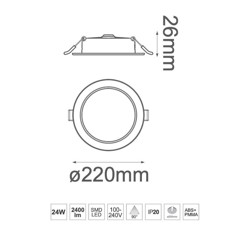 | DIMENSIONES | 22 cm x 2.6 cm, para empotrar en hueco de 20cm |