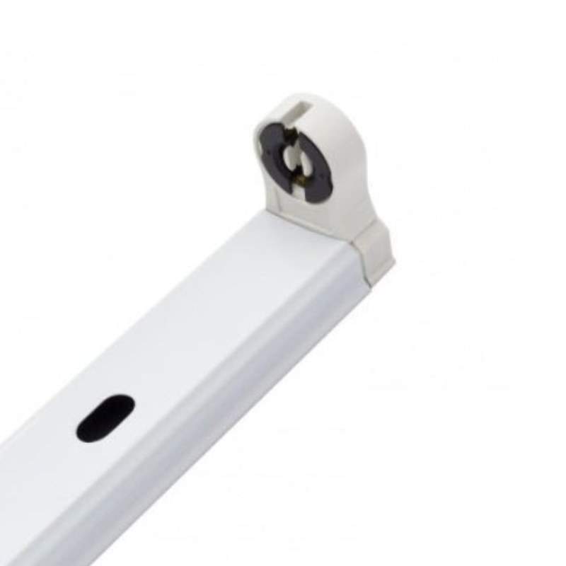 Luminaria para tubo T8 120 cm color blanco, voltaje 100 a 240V base G13, IP20 para uso interior.