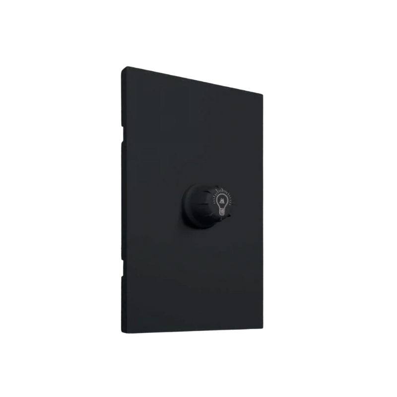 Placa SKIN FEEL, con textura agradable al tacto, en color Negro atenuador máximo 100W. Hechas de plástico ABS que garantiza la calidad.