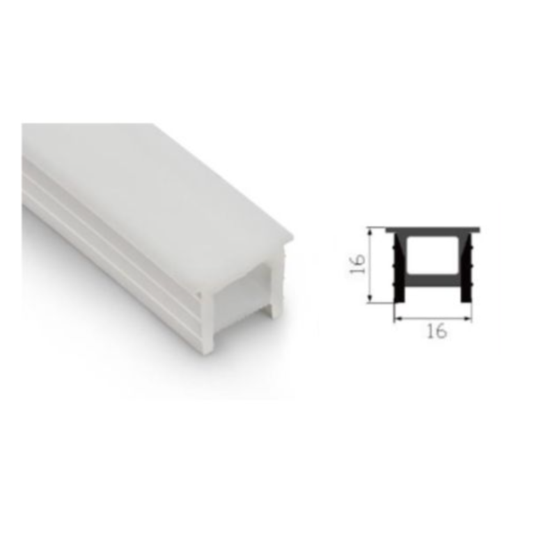 Tubo de silicona para tapar ranuras y disipar la iluminación y hacer efecto de luz continua. Viene en presentación de 5 m y es de empotrar